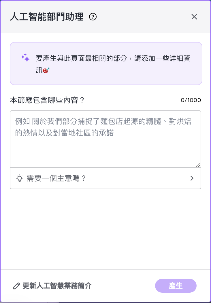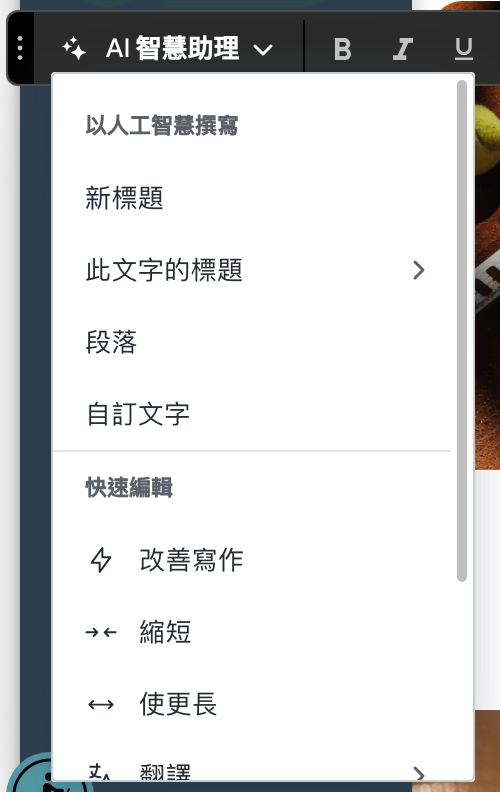 - İçerik metni oluşturma (başlık, gövde metni, ton) - Yapay zeka destekli otomatik sayfa ve blok tasarımı oluşturma - Yapay zeka destekli SEO arama motoru optimizasyonu ayarları - Tek tıklamayla birden fazla dile dönüştürme